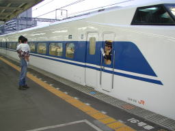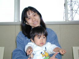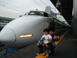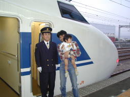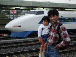見に行く途中でぐっすり眠っちゃった優希。たっぷり昼寝をしてから目が覚めたら,なんと目の前に大きな本物の新幹線があったせいか,しばらく呆然としていました。でも,大好きな新幹線だもんね。