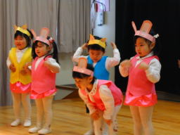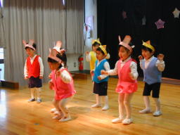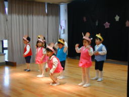 先生が目の前の客席で一生懸命踊り,それをみんな見ながら,頑張って,大勢の人の前で踊り始めました。