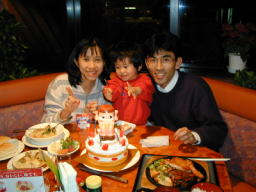 1月25日,夕食は不二家レストランでお祝いしました。ハイ,ポーズ。