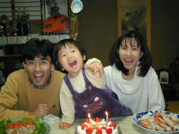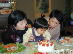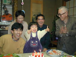 ろうそくを吹き消すことができるようになった優希は大喜びで何度も何度も吹き消していました。親戚の北原家のおじさん,おばさんも一緒にお祝いしてくれました。