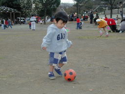 サッカーボールを蹴って遊びました。結構様になってるよ!?(親ばか)