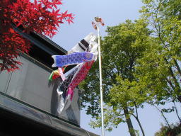 春の新緑と澄んだ青空の中,元気に泳いでいます。