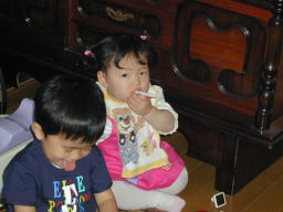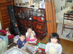 ママの幼なじみの洋子ちゃんのおうちへおじゃましに行きました。洋子ちゃんの姪っ子の美鈴ちゃんと久しぶりの対面!この写真に写っている1歳のあみちゃんとは初対面。かわいい女の子達に優希はでれでれ!終始うつむき加減で舌を出していました。