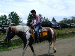 いつもはちょっとさわるだけの馬。でも,今日は生まれて初めて馬の上に乗りました。動物に関しては,怖いもの知らずの優希は大喜びでした。