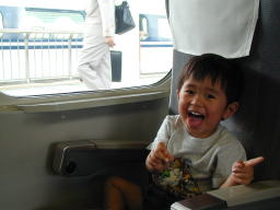 あれれ?何で乗ってるの?と,停車中に乗ってみたら,席に座って大はしゃぎだったそうです。(−−;