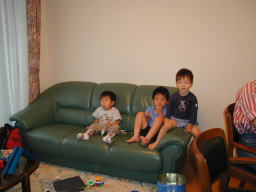 しばらく遊んだあとは,みんなでソファに座ってビデオを見ました。