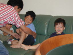 優希パパにこちょこちょ攻撃されて雄輝君がくすぐったーい!みんなの緊張ムードも取れてきて。