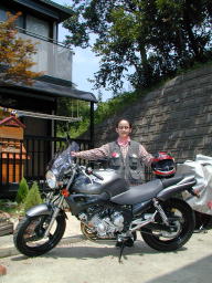 お母さん,自慢の愛車と記念写真です。このバイクに乗って,滋賀から一人で,伊勢原まで中央道をすっ飛ばして来てくれました!