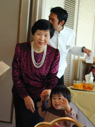 優希はせっかくママが買った結婚式用のスーツを着るのがいやで,もう,泣くのわめくの,逃げ回り続け,結局はこの格好のまま式へ。せっかく決めて写真をと思ったけど,ばあばが買ってくれたbebeのお洋服だったし,まぁ,良いか。