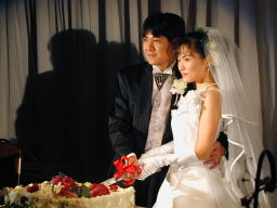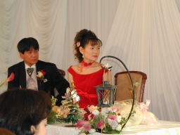 それまでは,にこやかに,高砂に座っていた洋子ちゃんだったけど,私のスピーチとその歌くらいから,少し泣いてしまいました。私も,洋子ちゃんの幸せそうな花嫁姿が嬉しくて,少し泣いてしまったせいかな。